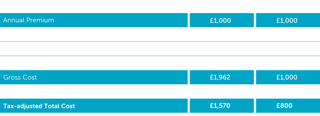 The Relevant Life Plan is particularly beneficial for Andrew because he’s employed as a salaried director and is also a shareholder of the business, so all of the savings go to him. If he were to pay for his Life Insurance personally it would cost £1,570 every year. By his company using a Relevant Life Plan to provide cover, it only costs £800 each year. That’s a saving of almost 50%.